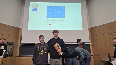 In November 2024, undergraduate students (2nd year computer science and engineer major) Allen Wolf and (4th year computer science major) Liam Stamper showcased their technical innovation at Swan Hacks, securing second place with their project, Quizly. Wolf drew inspiration for the idea from his experience with different live platforms throughout K-12. Since this year’s hackathon centered around education, they aimed to address features that similar platforms lacked—making quizzes both fair and educational.