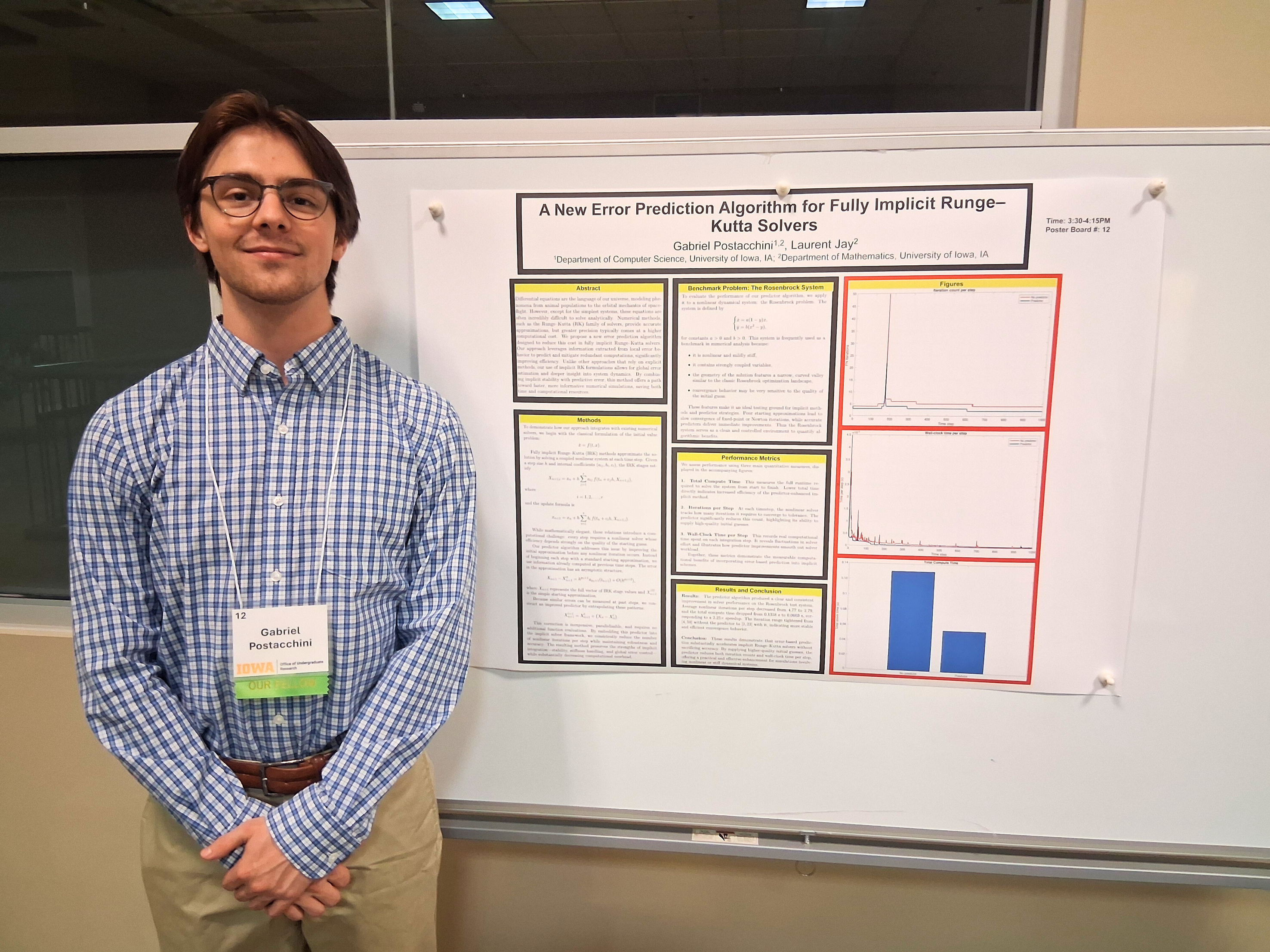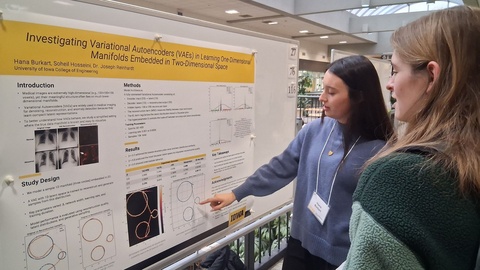Eva Singh, a junior in the Computer Science and Engineering program, presented "Investigating Wasserstein Generative Adversarial Networks (W-GANs) in Learning 2D Probability Distributions" under the guidance and support of Dr. Soheil Hosseini, Professor Joseph Reinhardt and Dr. Eric Hoffman. Her research focused on studying how WGANs perform when learning structured data patterns. She used the Three Circles dataset and compared how different model capacities affected performance and mode collapse.